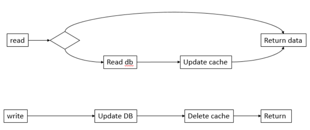 Cache Aside Pattern,Delete the existing Cache when writing the database。Cache Aside Pattern能有效避免并发问题。