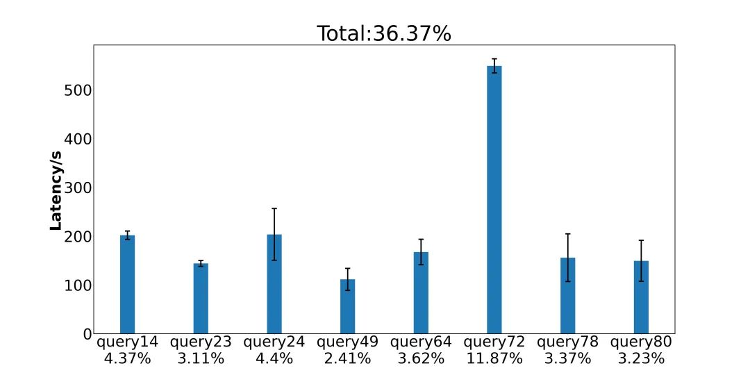 如图8所示,这是99个query总和的优化效果展示,可以看到最终优化效果达到了近30%。