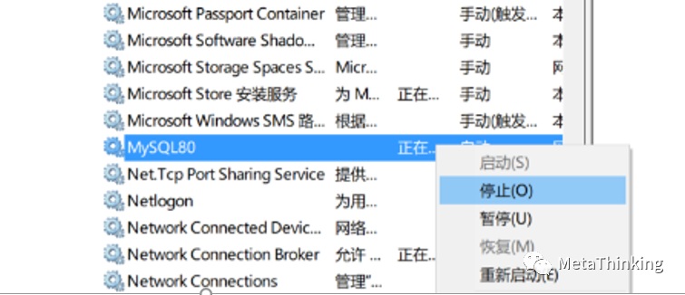 1、首先关闭MySQL服务,这步是必须要做的,否则后面操作将无法生效,下面介绍两种方法: