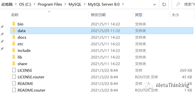 等待命令执行片刻后便在MySQL Server目录下生成了一个data文件如果没有这个文件,下面的命令会报错,所以必须要确定这个文件是否存在。