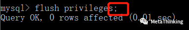 7、密码更改完后,进行权限刷新flush privileges;千万不要漏掉分号。