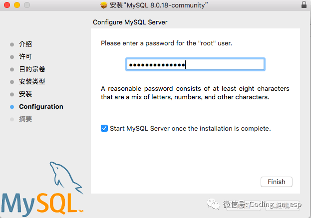 (9)给root用户输入一个密码后,单击“Finish”按钮