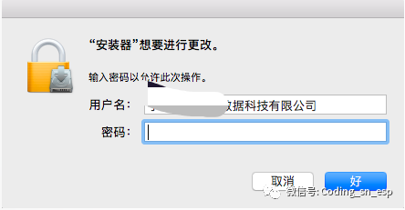 (10)输入mac的登录用户名和密码,进行安装器更改