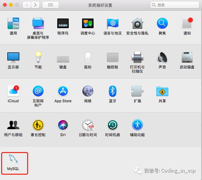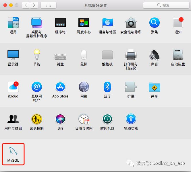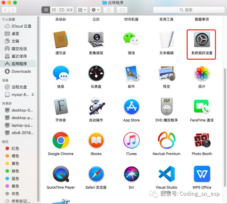 ①“前往” --> “应用程序” --> “系统偏好设置”,找到MySQL