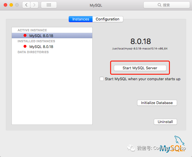 ④单击“Start MySQL Server”按钮,重启数据库服务