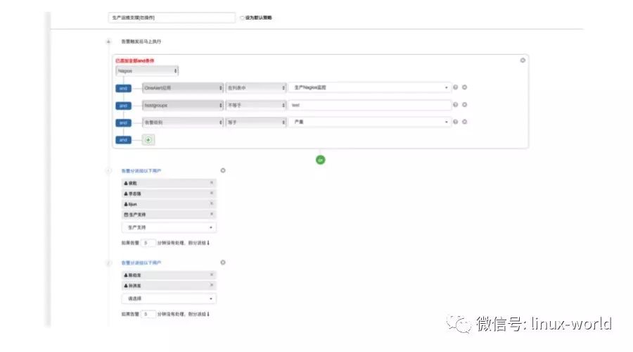 通过分派策略、可以进行流程的设计,根据级别、应用设置对应的一、二线负责人,以及处理时限,超时未响应(确认告警)自动升级。