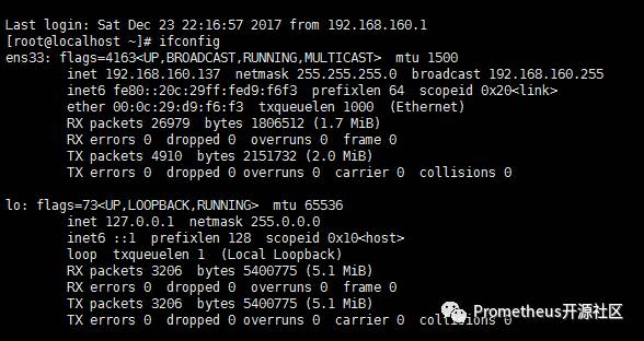 查看虚拟机ip地址:ifconfig