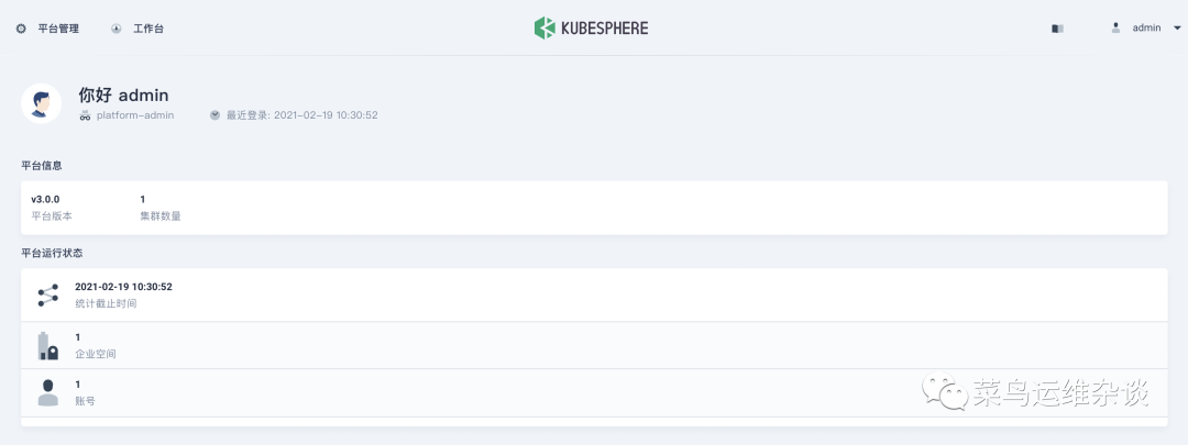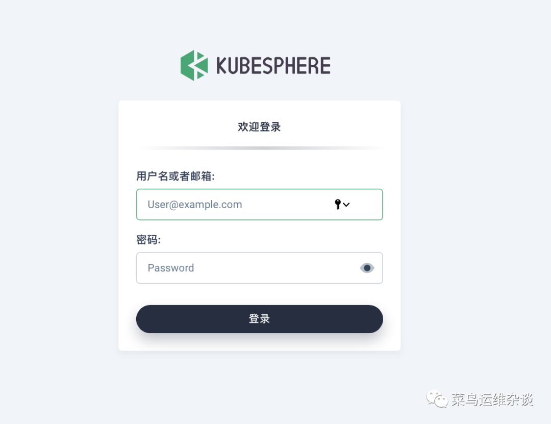 现在我们可以使用http://10.26.29.205:30880 登录KubeSphere管理界面