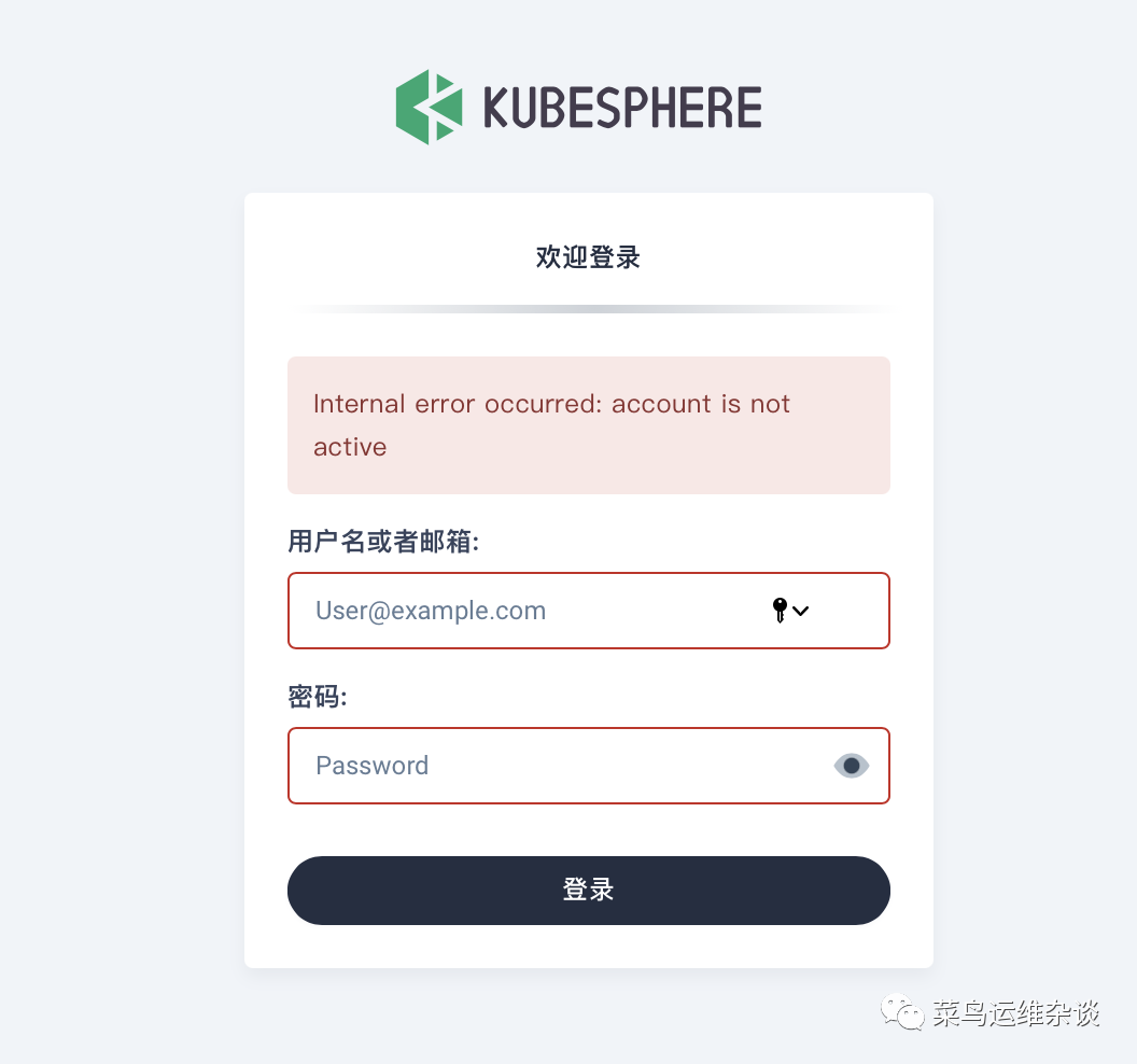 # 部署完成后需执行如下两条命令规避兼容性问题,详情可参考:https://kubesphere.com.cn/forum/d/2217-account-is-not-active