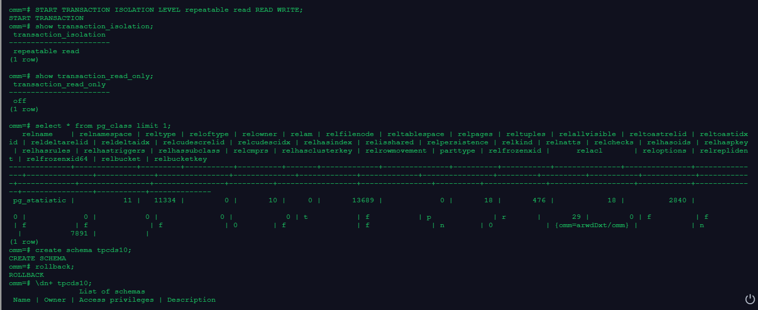 START TRANSACTION ISOLATION LEVEL repeatable read READ WRITE;