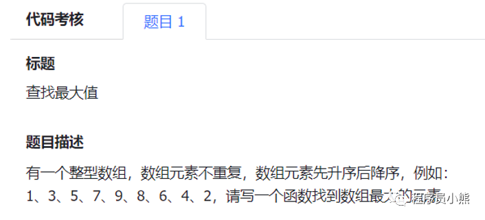 例如:1,3,5,7,9,8,6,4,2,请写一个函数找出数组最大的元素。