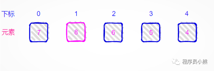 思路二:遍历整个数组,设置最大元素为第一个元素,边遍历边比较,同时更新最大元素。