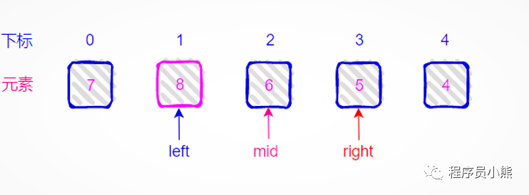 比较中间元素与其下一个元素大小关系,缩小目标值的查找区间。