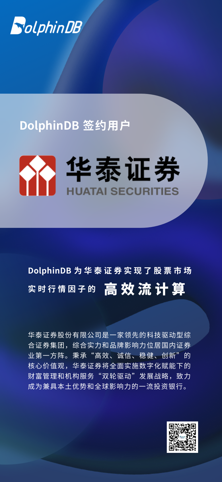 DolphinDB为华泰证券实现了股票市场的实时行情因子的高效流计算。