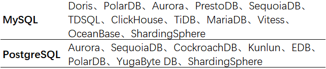 从兼容性角度来看,最为流行的两款开源数据库MySQL、PostgreSQL成为最大赢家。从生态推广角度来看,兼容性无疑是个不错的选择,可以充分地共享开源生态,更好地推广产品落地。下文整理较为熟悉的一些产品,这其中有部分产品是兼容两种的生态,其更具优势。