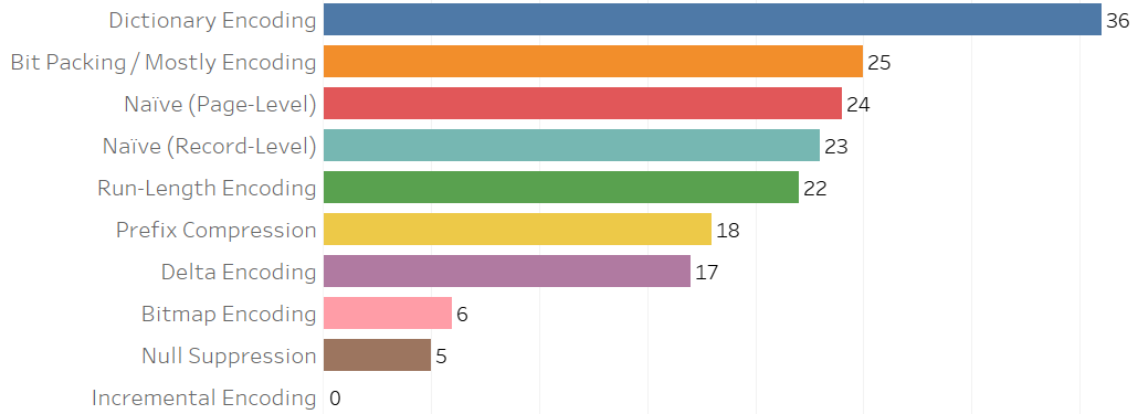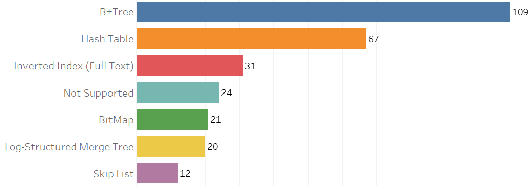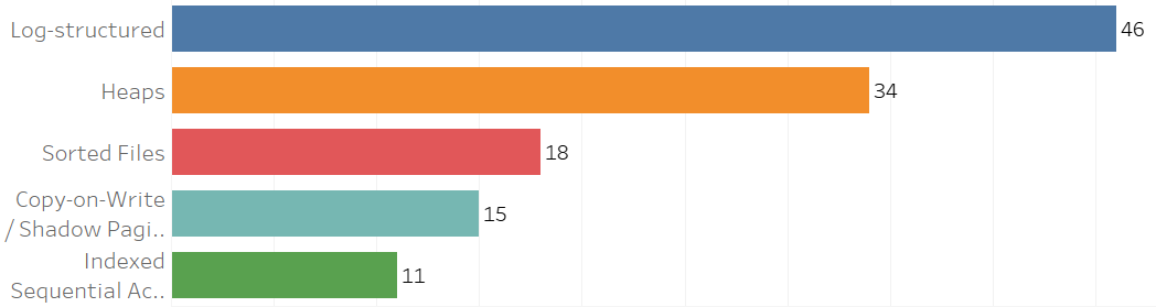 存储组织方面,基于日志结构和堆结构占据大部分。