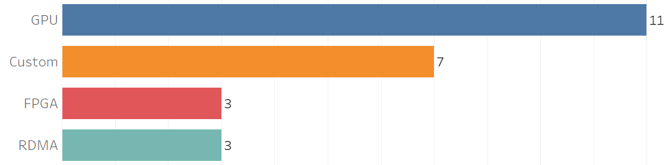 从整体占比来说,明确使用特有硬件加速的数据库产品还很少。近些年来硬件发展迅速,数据产品面向硬件特性,仍然有较长的路要走。这里我们找到一些典型产品,如使用RDMA的PolarDB、使用FPGA的Netezza等。