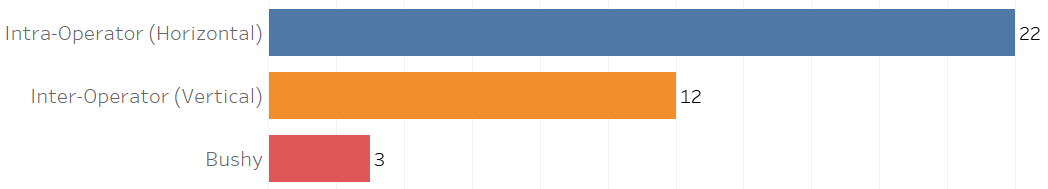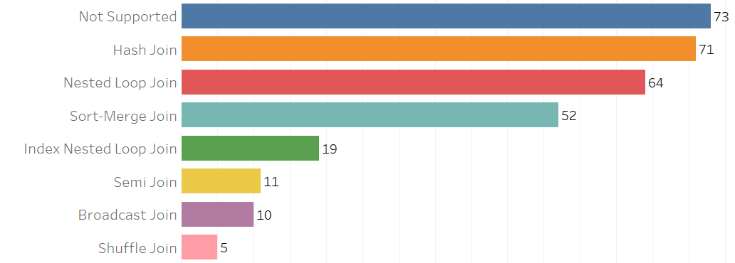 哈希、嵌套、合并排序三个类占据多数,但仍有不少产品不支持关联查询。