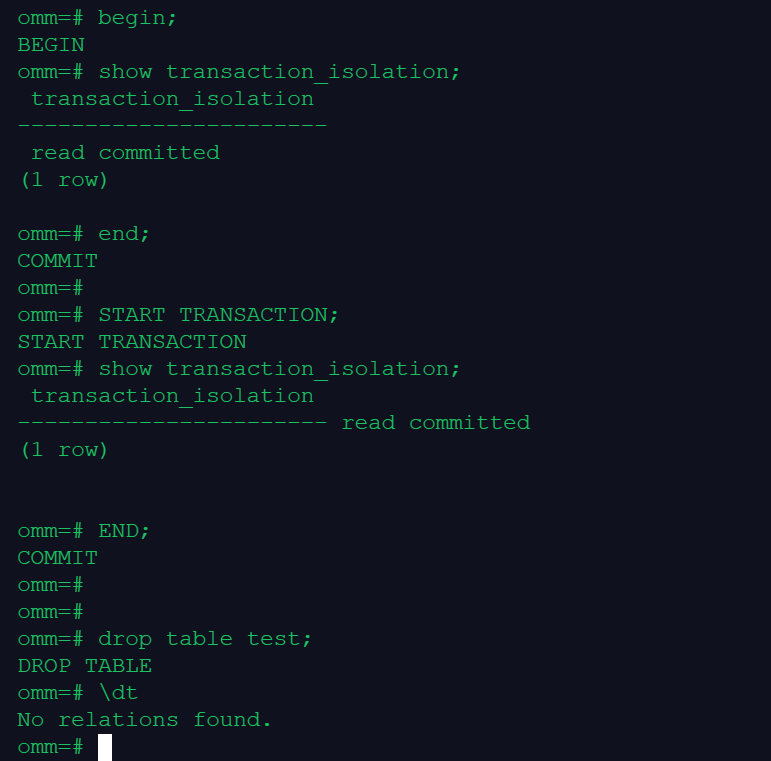 SET LOCAL TRANSACTION ISOLATION LEVEL READ COMMITTED READ ONLY;
