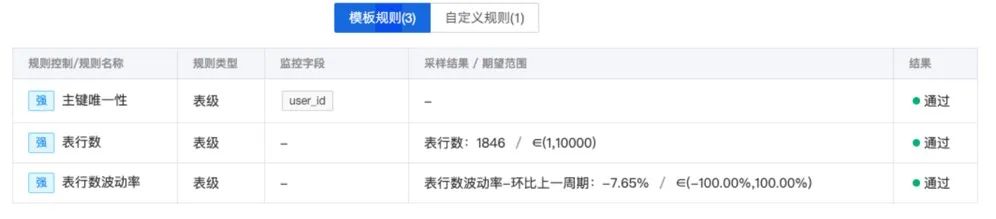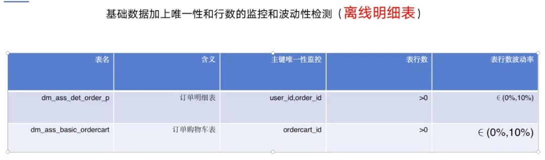 比如在明细数据这块我们主要进行了唯一性和行数以及波动性的检测。