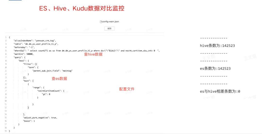 对于标签,除了存储hive kudu外还会存储到ES和Hbase里面,所以我们还加了数据对比监控。