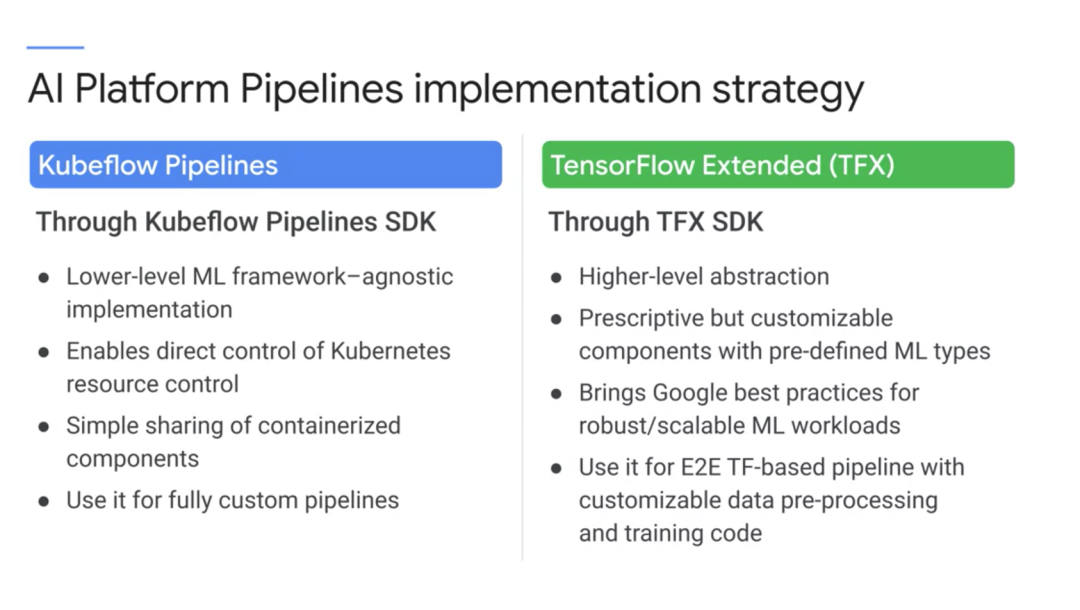 有一点倒是达成了共识,机器学习的项目中,真正机器学习的内容占比不到5%,有大量的成本浪费在了工程实践上。于是一个概念诞生了:MLOps,就像DevOps一样,来解决model开发到落地之间的差距。方案也不是没有,各家云厂商其实都在做:AI Platform pipeline。像AirFlow MLFlow Clipper多少都能算这个领域,大家的功能基本差不多。Google 在Kubernetes上开发的kubeflow