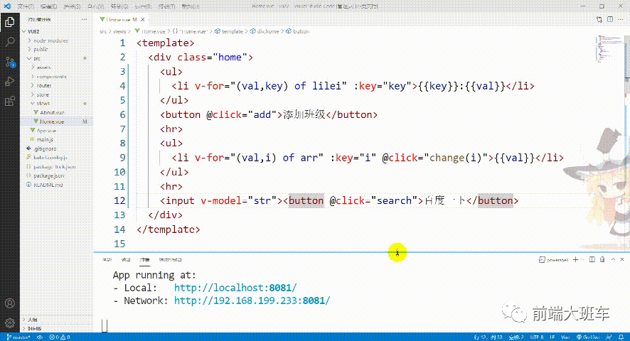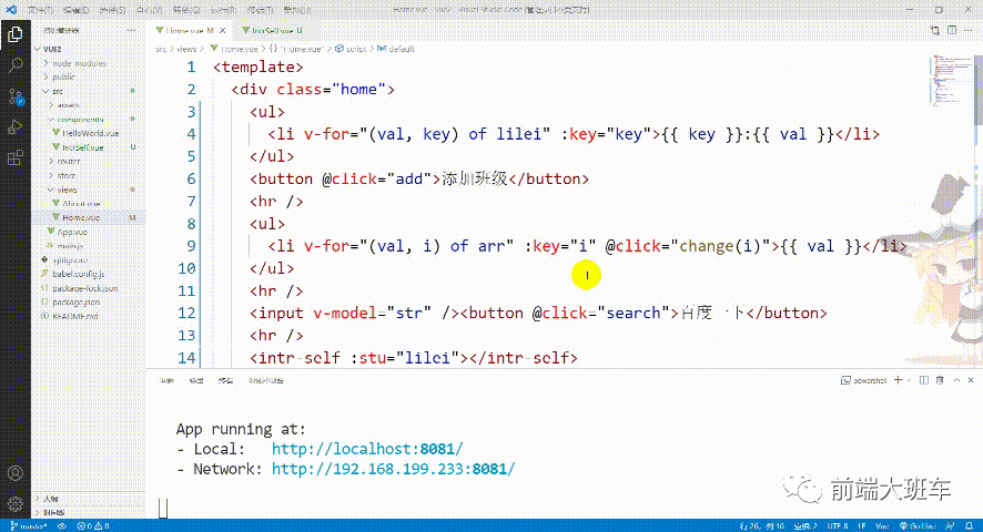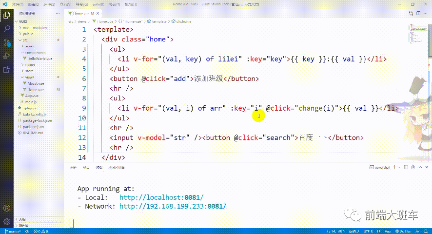 其实,开篇所说的前两个问题(用下标修改数组内容和为对象添加新属性),在vue3中已经彻底解决了。比如,我们可以将之前vue2中的代码,直接拷贝vue3脚手架中Home.vue中,直接测试运行,如下图所示: