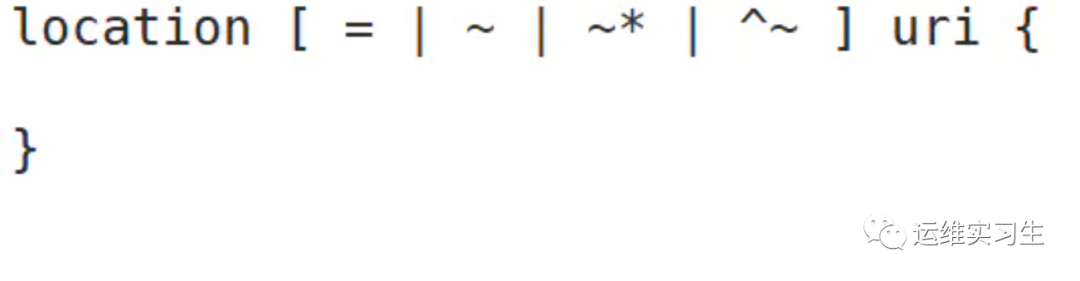 = :用于不含正则表达式的 uri 前,要求请求字符串与uri 严格匹配,如果匹配成功,就停止继续向下搜索并立即处理该请求。