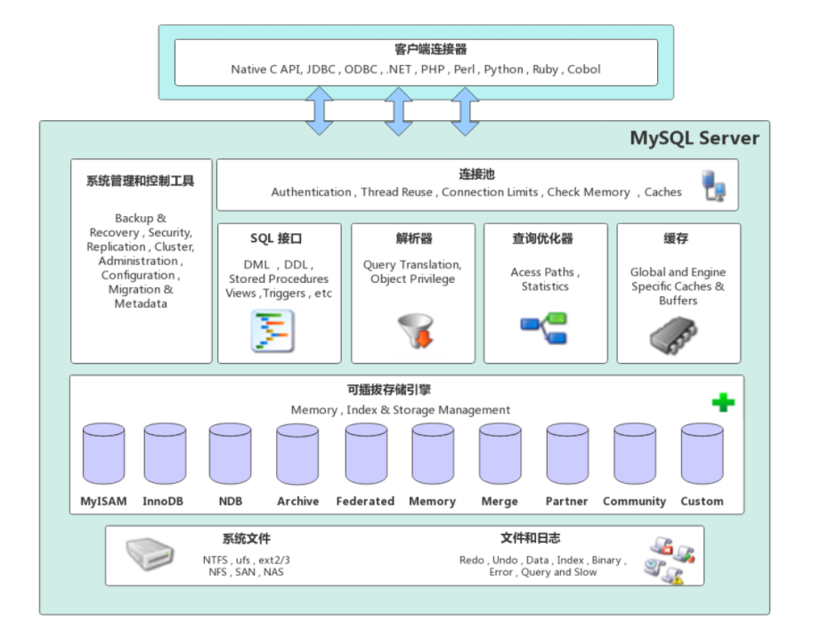 客户端连接器:这个就是和各个编程语言进行交互连接的,JDBC应该是大家最熟悉的了吧