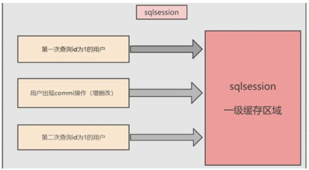 首先用户第一次查询sql时候,sql的查询结果就会被写入sqlsession一级缓存中的,这样用户第二次查询时,直接从一级缓存取出数据,而不是数据库。如果用户出现commit操作时,比如增删改查,这时sqlsession中一级缓存区域就会全部清空。清空之后再次去一级缓存查找不到,就会走数据库进行查找,然后再次存到缓存中。注意:缓存使用的数据结构也是map的。