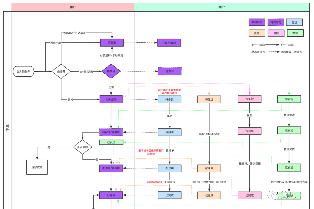 有时除了关系业务处理逻辑,还要关心对象状态的流转,这里截取了一个电商网站在下单时的订单状态流转的示例。