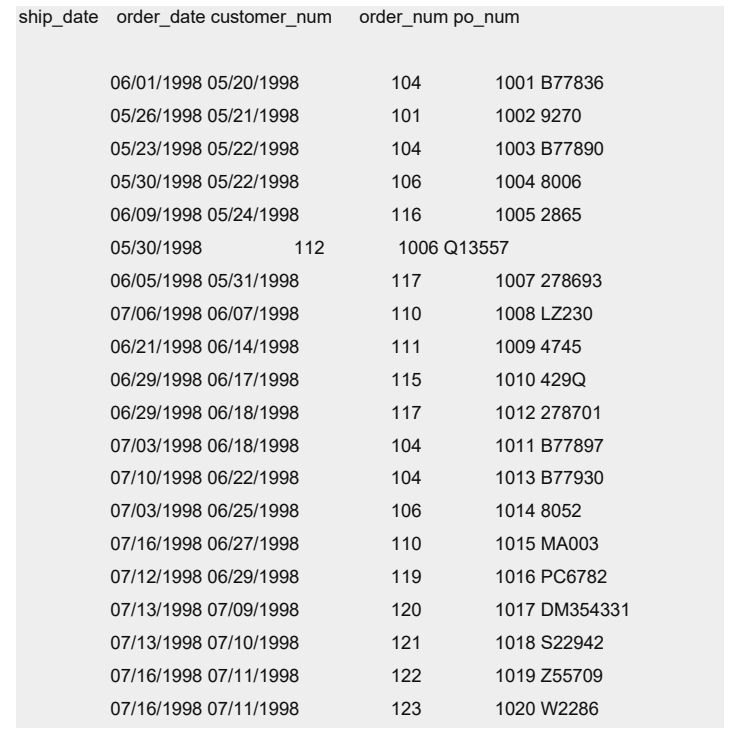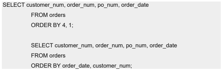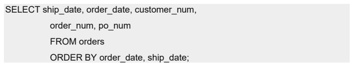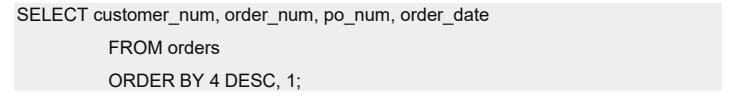 在此示例中,数据先按 order_date 以降序排序再按 customer_num 以升序排序。