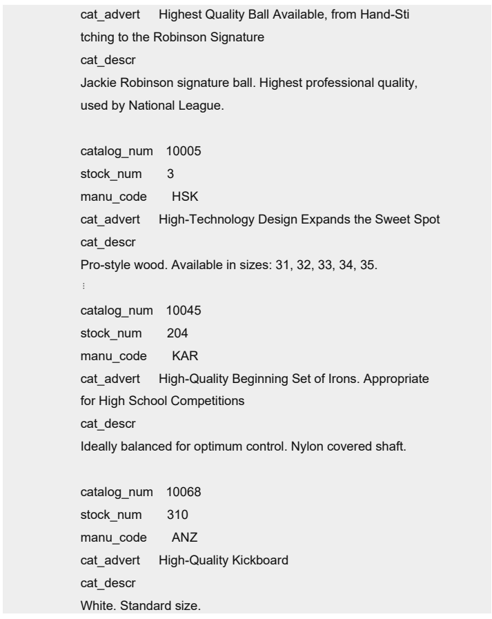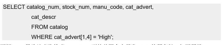 下标 [1,4] 导致该查询检索 cat_advert 列的前四个字母为 High 的所有行。如下所示。