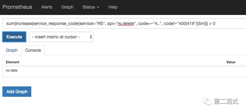 原来同事使用了图一的查询来监控服务状态码为 4xx, 且非 400 和 419 的情况。