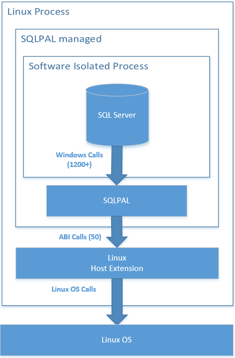 SQL Server 团队基于这两个已有基础进行了伟大的尝试,将二者进行了必要的重写和充分的融合,形成了新一代的底层封装 SQLPAL(SQL Platform Abstraction Layer),同时将上层逻辑代码都移植到了 SQLPAL 之上——这是 SQL Server 得以在短时间内实现跨平台的关键所在。与此同时,SQLPAL 这种特殊的抽象机制,并没有付出通常意义上抽象所带来的性能代价,因为它一定程度地绕过了操作系统的制约,自底向上地搭建了自身所需的运行环境。