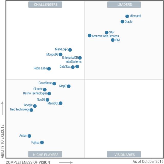 Gartner 操作型数据库 (ODBMS) 魔力象限图[注 12]