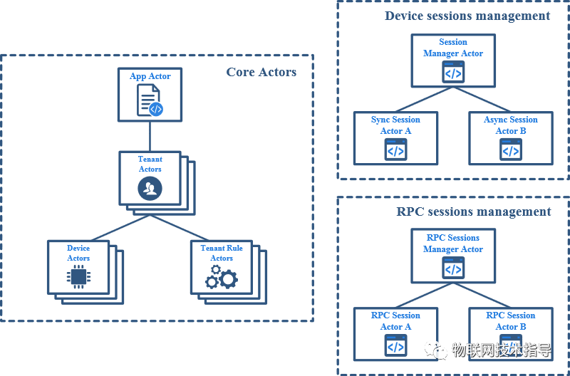 RPC Session Actor - 表示集群模式下2个ThingsBoard服务器之间的通信会话。使用基于gPRC的HTTP/2进行通信。