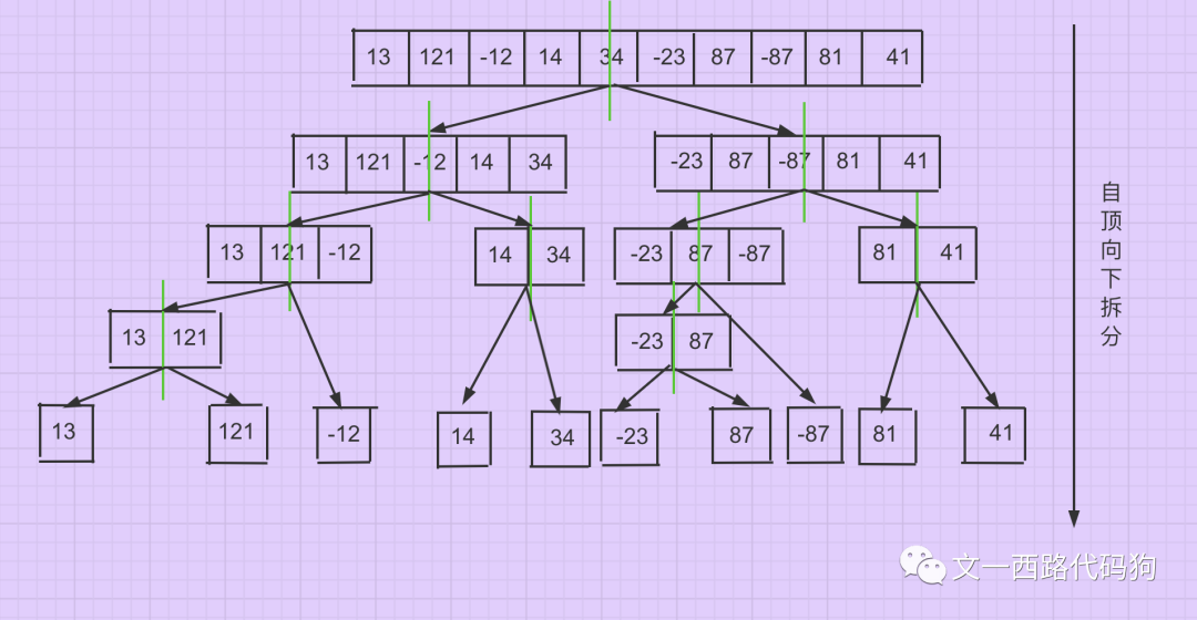 /*** @Date: 2020-03-24* @Description: 最大子数组问题算法(分治法 、 无左右下标)*/public static int maxSubArraySort(int a[], int low, int high) {if (low > high) {return 0;}if (low == high) {return a[0];}int S_Left = 0, S_Right = 0, S_Cross_Left_Right = 0;//while (low < high) {int i = low;int j = high;int mid = (i + j) / 2;S_Left = maxSubArraySort(a, i, mid);S_Right = maxSubArraySort(a, mid + 1, j);S_Cross_Left_Right = CrossLeftAndRight(a, i, mid, j);//}return maxInThreeNum(S_Left, S_Right, S_Cross_Left_Right);}public static int CrossLeftAndRight(int a[], int low, int mid, int high) {int Sub_Left_Sum = Integer.MIN_VALUE;int Sub_Left_Sum_Tem = 0;for (int i = mid; i >= low; i--) {Sub_Left_Sum_Tem += a[i];if (Sub_Left_Sum_Tem > Sub_Left_Sum) {Sub_Left_Sum = Sub_Left_Sum_Tem;}}int Sub_Right_Sum = Integer.MIN_VALUE;int Sub_Right_Sum_Tem = 0;for (int i = mid + 1; i <= high; i++) {Sub_Right_Sum_Tem += a[i];if (Sub_Right_Sum_Tem > Sub_Right_Sum) {Sub_Right_Sum = Sub_Right_Sum_Tem;}}return Sub_Left_Sum + Sub_Right_Sum;}public static int maxInThreeNum(int S_Left, int S_Right, int S_Cross_Left_Right) {return (S_Left > S_Right ? (S_Left > S_Cross_Left_Right ? S_Left : S_Cross_Left_Right) : (S_Right > S_Cross_Left_Right ?S_Right : S_Cross_Left_Right));}