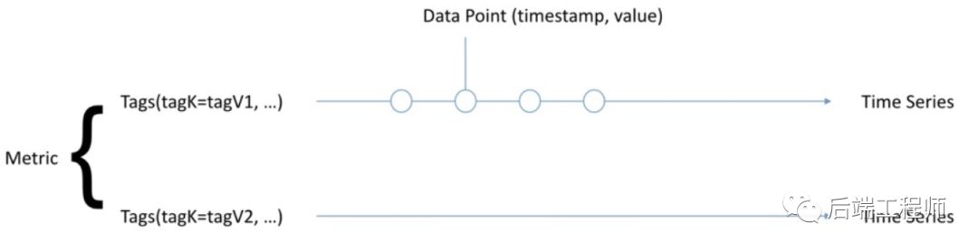 如上图所示,一条时间线由Metirc + 多个tag唯一确定,时间线上会有源源不断的数据点(Data Point)写入,数据点由时间戳和值组成。OpenTSDB支持秒级,毫秒级别,两种时间精度。