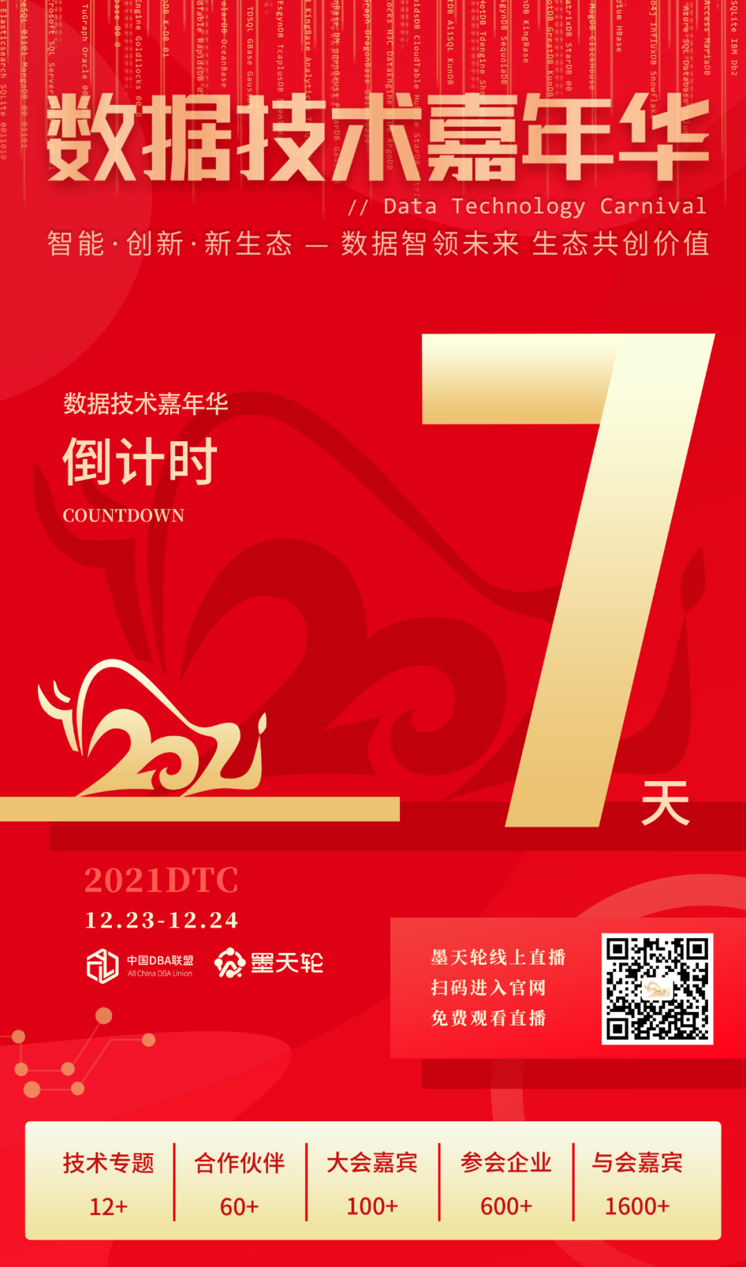 12月23-24日,2021数据技术嘉年华(DTC)将通过墨天轮社区线上举办。围绕“智能·创新·新生态——数据智领未来 生态共创价值”这一主题,来自数据领域的领军人物、学术精英、技术专家、行业实践者、生态布道者将带来超过60场主题演讲。想不想提前了解他们如何看待行业发展现状?最想跟大家探讨哪些新技术?对未来技术发展趋势有什么看法?针对大家感兴趣的问题,组委会将带来大会演讲嘉宾系列采访。还在等什么?精彩提前看起来!