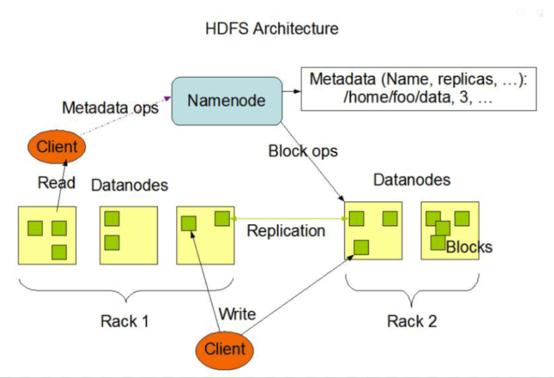 •负责存储数据块,负责为系统客户端提供数据块的读写服务•根据 Namenodel的指示进行创建、删除和复制等操作•心跳机制,定期报告文件块列表信息