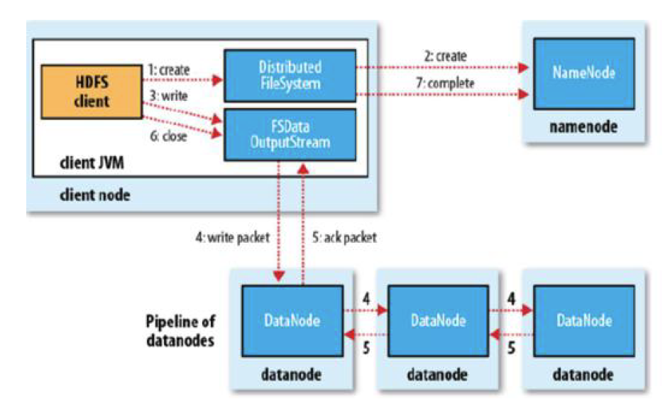 在存储数据时,首先要找nn分配dn来写入数据。hdfs默认会存储三分数据副本。