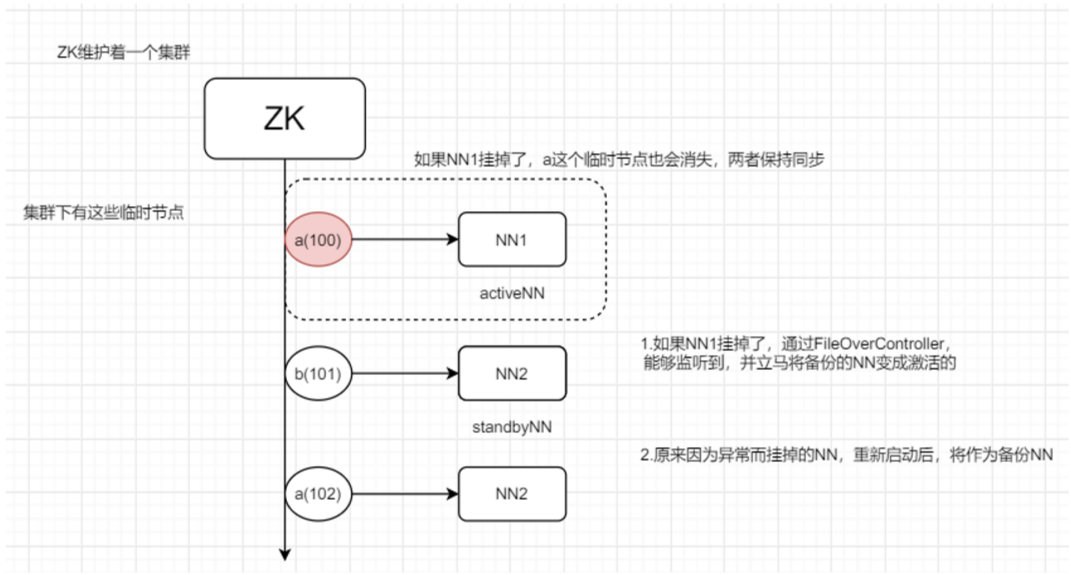 实现了active挂掉无感知。active挂掉后,fc进程会将信息传给zk,进行一个故障转移。