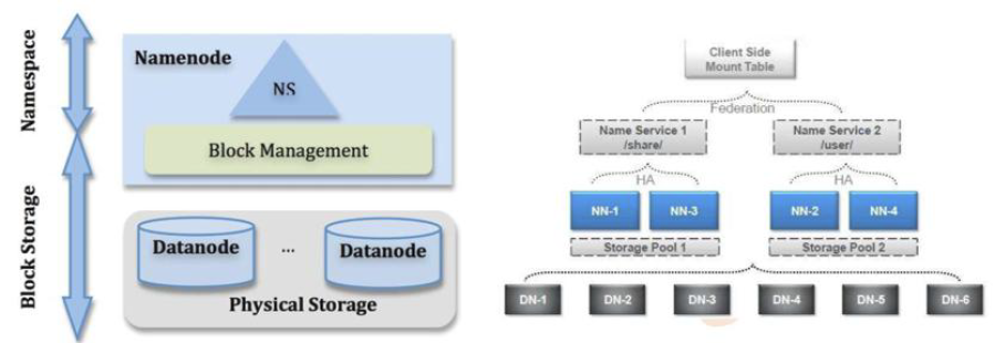 •通过将数据进行切分,产品部门,技术部门,其他业务部门,各自维护各自的namenode, 但是背后的数据都是共享同一套DN
