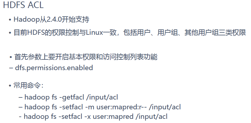 •Namenode HA•Namenode Federation•HDFS快照•HDFS缓存•HDFS ACL