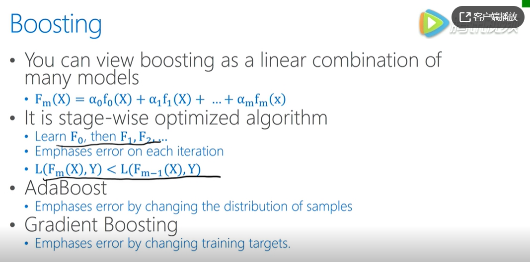 LightGBM属于Boosting的一种。Boosting就是指用一系列的模型线性组合来完成模型任务。在Boosting学习中,逐步的确定每一个模型之间,每一个子模型叠加到复合模型当中来,在这个过程中保证损失函数随着子模型的增加而逐渐减少。