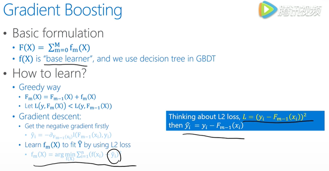 也就是当gradient boosting中,每一个base learner(基础学习器?)都是一个decision tree(决策树)时,我们就把它叫做GBDT。