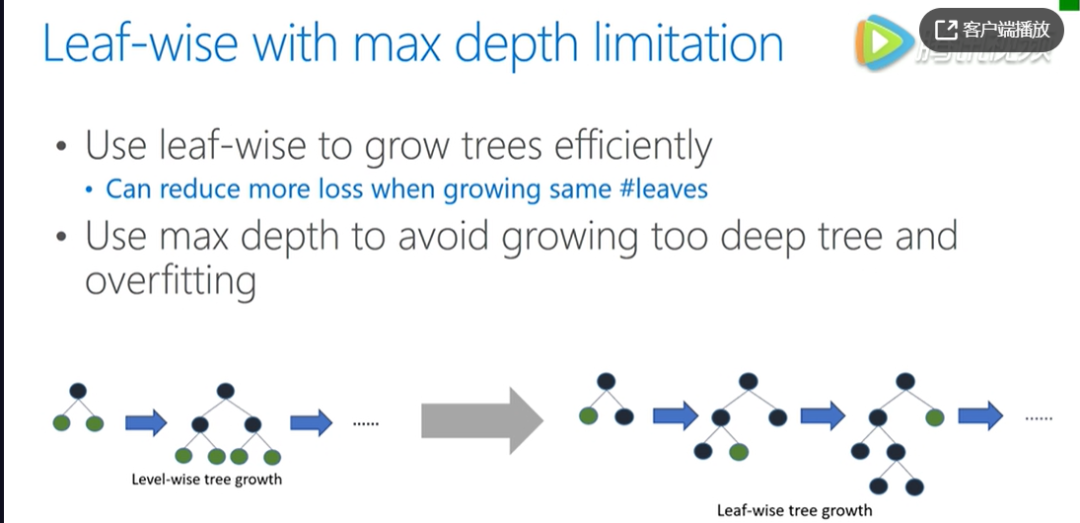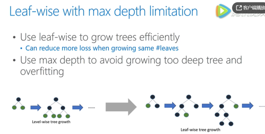leaf-wise 相对于 level-wise ,更加的高效,还可以降低更多的训练误差,得到更好的精度,但单纯使用它来进行生长,可能会长出比较深的树,在小数据集上可能造成过拟合,因此在 leaf-wise 上,多加了深度的限制。