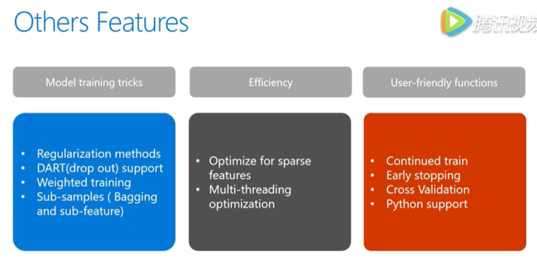 另外,数据结构的变化也使得细节处理方面效率有所不同,比如对缓存的利用,lgb更加高效。从而使得它有很好的加速性能,特别是类别特征处理,也使得lgb在特定的数据集上有非常大的提升。