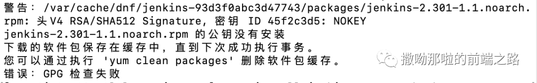 首先安装java和gityum install javayum install git然后安装jenkinswget -O /etc/yum.repos.d/jenkins.repo http://pkg.jenkins-ci.org/redhat/jenkins.reporpm --import https://jenkins-ci.org/redhat/jenkins-ci.org.key这一步的时候可能会出现下面报错,提示公钥没有安装yum install jenkins